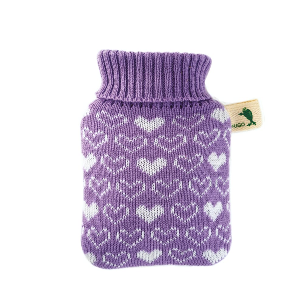 Mini Bouillotte housse tricotée Cœur Lilas